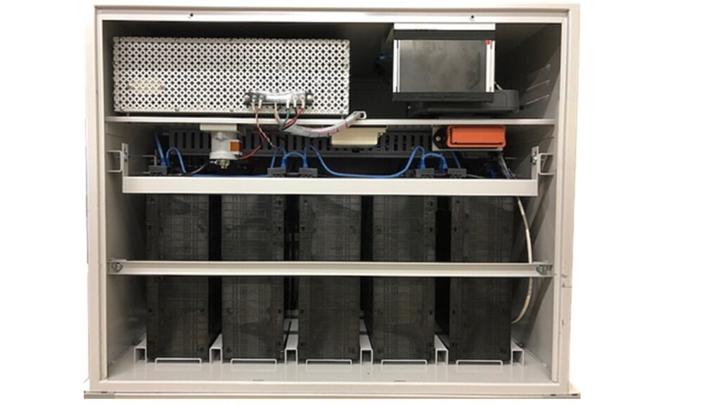 LiB組電池の運用中、IoTによる遠隔監視システムで常時データを収集し、不具合の事前予知を行い、